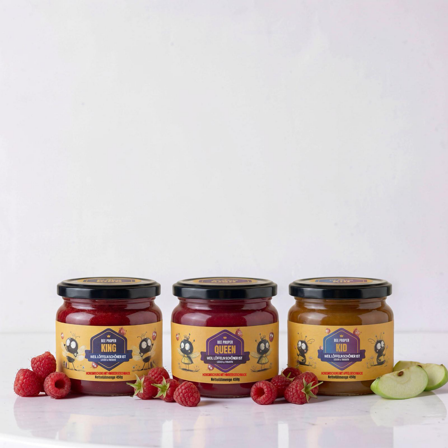 Bee Proper verbindet hochwertigen Honig mit ausgewählten Superfood-Zutaten und besonderen Geschmacksrichtungen. Ob fruchtige Varianten wie Himbeere oder Apfel, klassisch oder mit Chili – jede Sorte vereint natürlichen Genuss mit der Energie und den Vitalstoffen der Bienen. Ein einzigartiges Superfood für deinen Alltag.